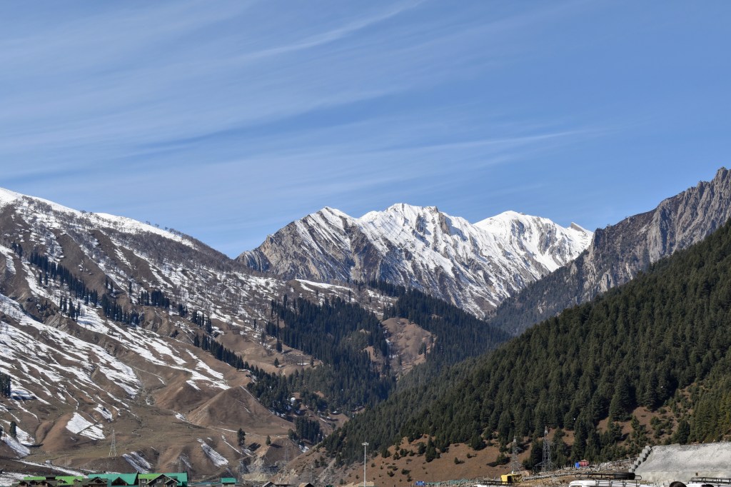 We set off from Srinagar on a crisp November morning, the chill in the air biting through our layers of clothes. The drive was a visual treat, the verdant greens of the valley gradually fading into earthy tones, hinting at the rugged, colder terrains ahead. Nestled about 77 kilometers northeast of Srinagar in Jammu and Kashmir’s Ganderbal district, Sonmarg sits at the gateway to Ladakh. By mid-November, the landscape is partially cloaked in snow, the crowds have thinned, and the place exudes a serene, almost otherworldly charm.