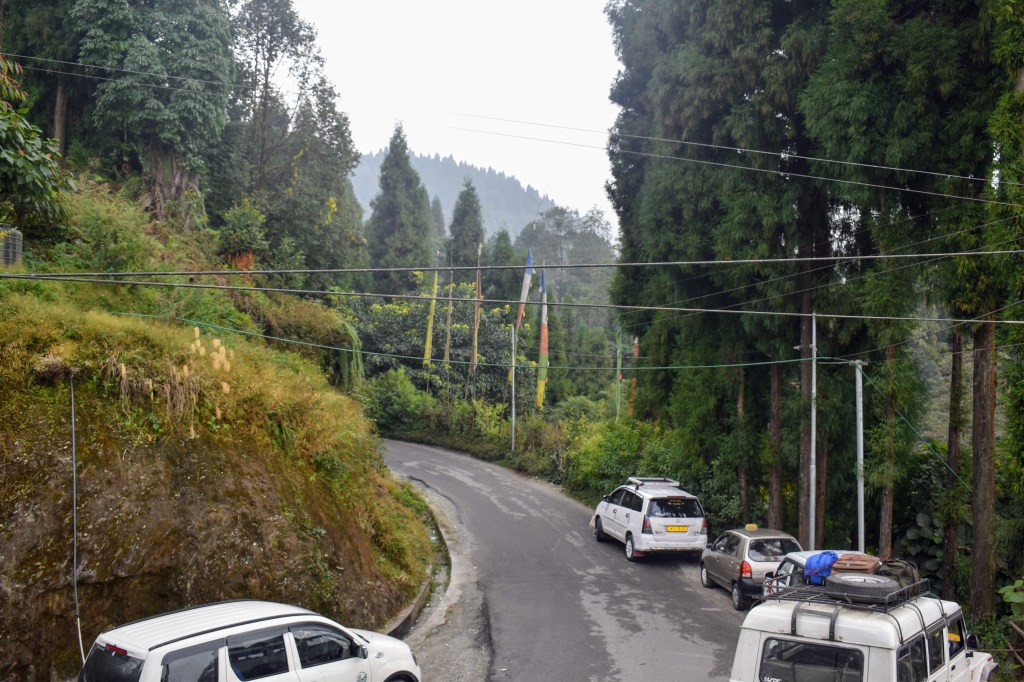 The drive from Lachen to Lachung is nothing short of cinematic. Think emerald valleys, flowering shrubs, waterfalls tumbling down rocky slopes, and strings of colorful prayer flags fluttering in the breeze. The light drizzle and gentle wind gave the landscape a romantic touch.