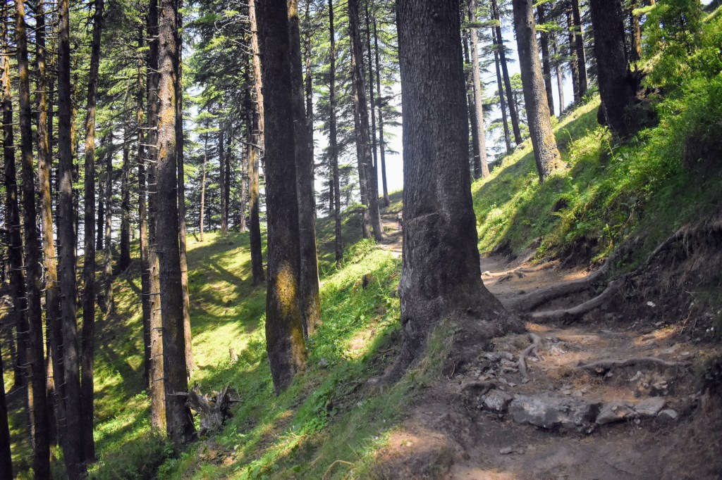 The route is a picturesque delight. The trail winds through tall deodar trees, flowering shrubs, and fluttering butterflies. The dense greenery in every direction, the occasional calls of birds and crickets, and the earthy smell of soil after the light rain provided a truly therapeutic experience. The best part? No mobile network here, ensuring complete, blissful disconnection from distractions—just us and the forest.