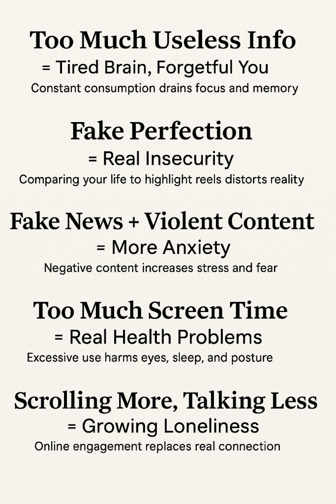 Social media today is less about staying connected and more about staying hooked. What started as a tool has quietly turned into a trap. We consume hundreds of thousands of words, images, videos, and stories per day—many of which we don’t consciously choose. Social media platforms are designed to keep us engaged, and without realizing it, we’re letting our minds absorb it all like a sponge. The result? We feel drained, distracted, and disconnected from what really matters. We become anxious, forgetful and honestly, a bit lonely too.